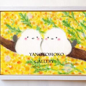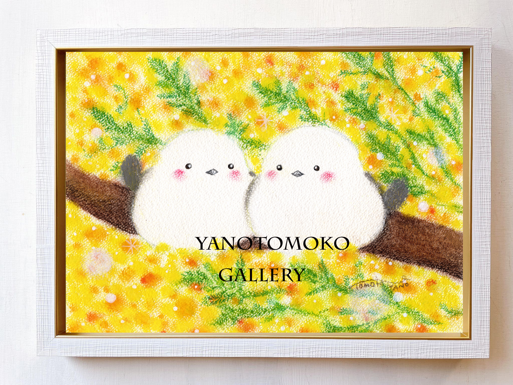【ミモザとシマエナガ】 シマエナガの絵 人気 可愛い ミモザ 癒し ヒーリングアート パステル画 ホスピタルアート 【A4フレーム】 プレゼント