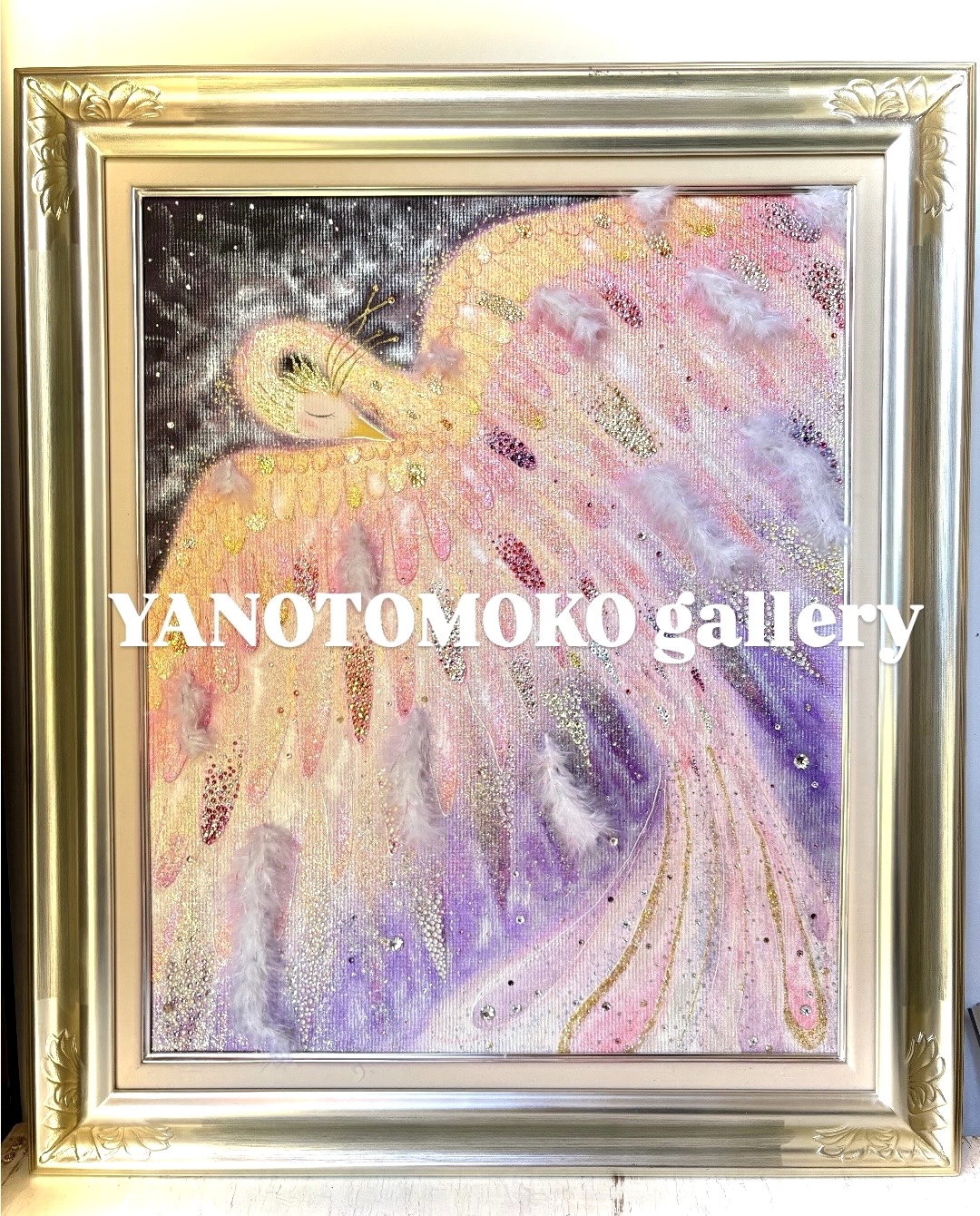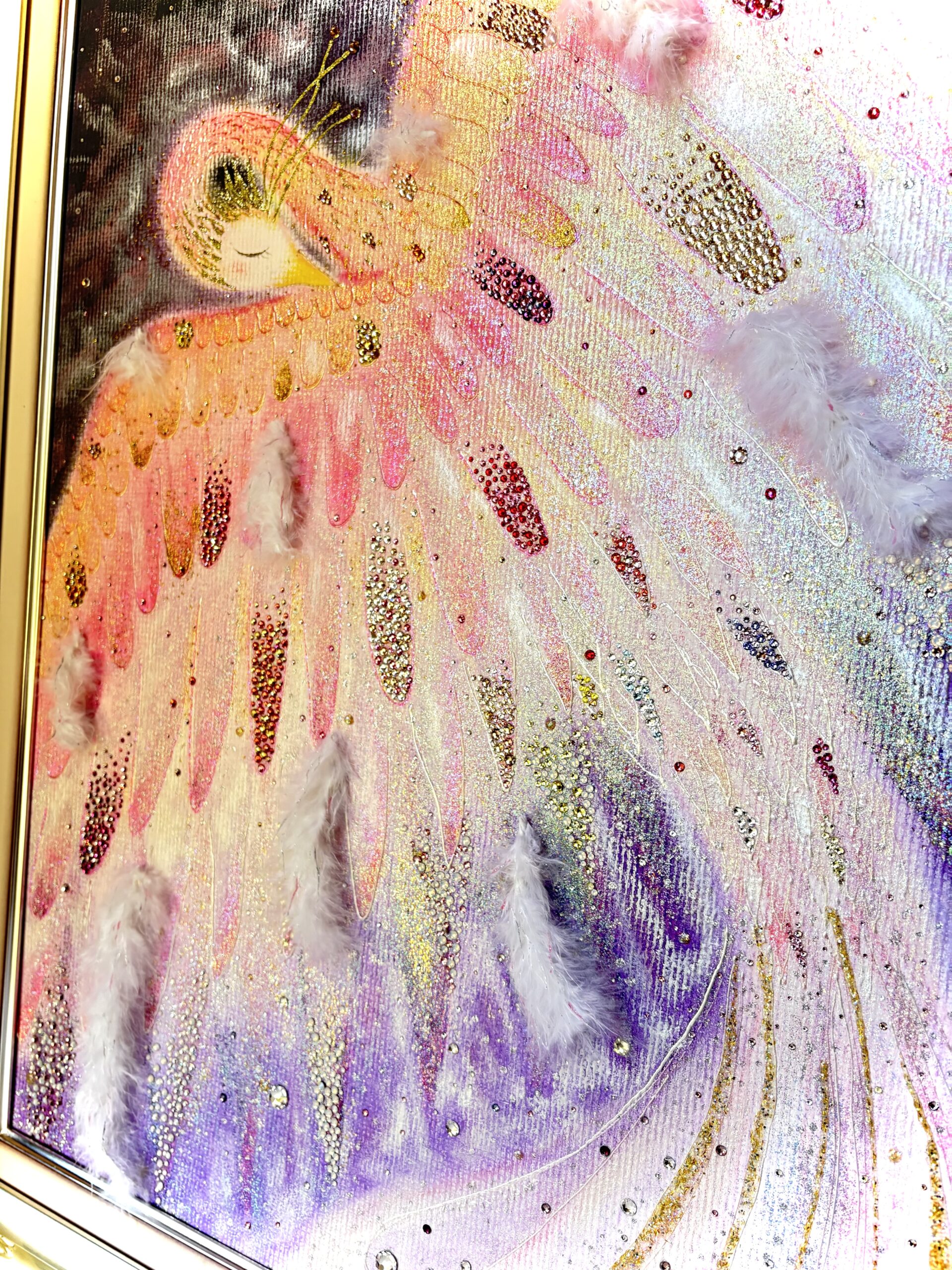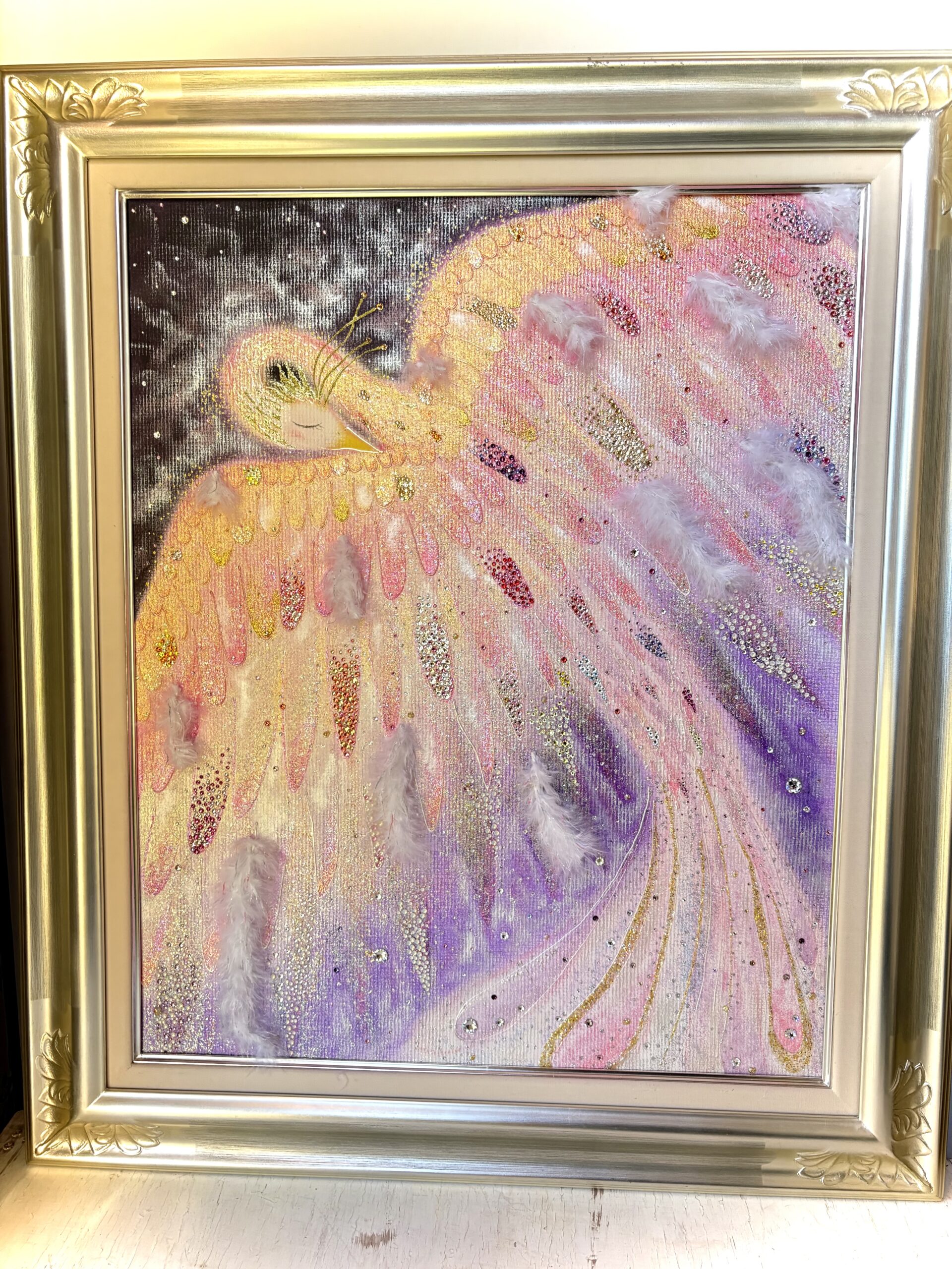 【LOVEフェニックス】 一点もの原画 鳳凰 愛の絵 優しい絵 ヒーリングアート ピンク鳳凰