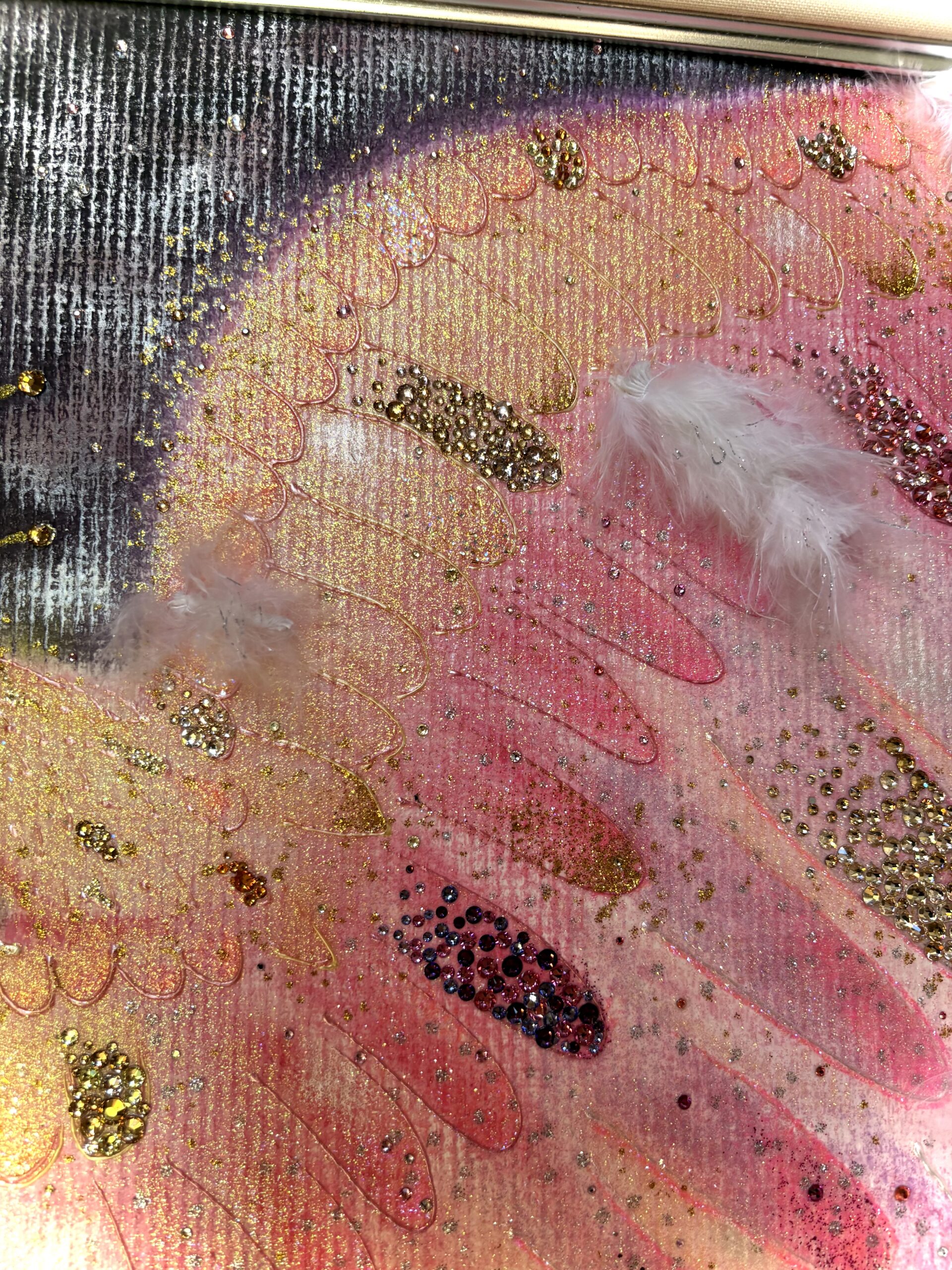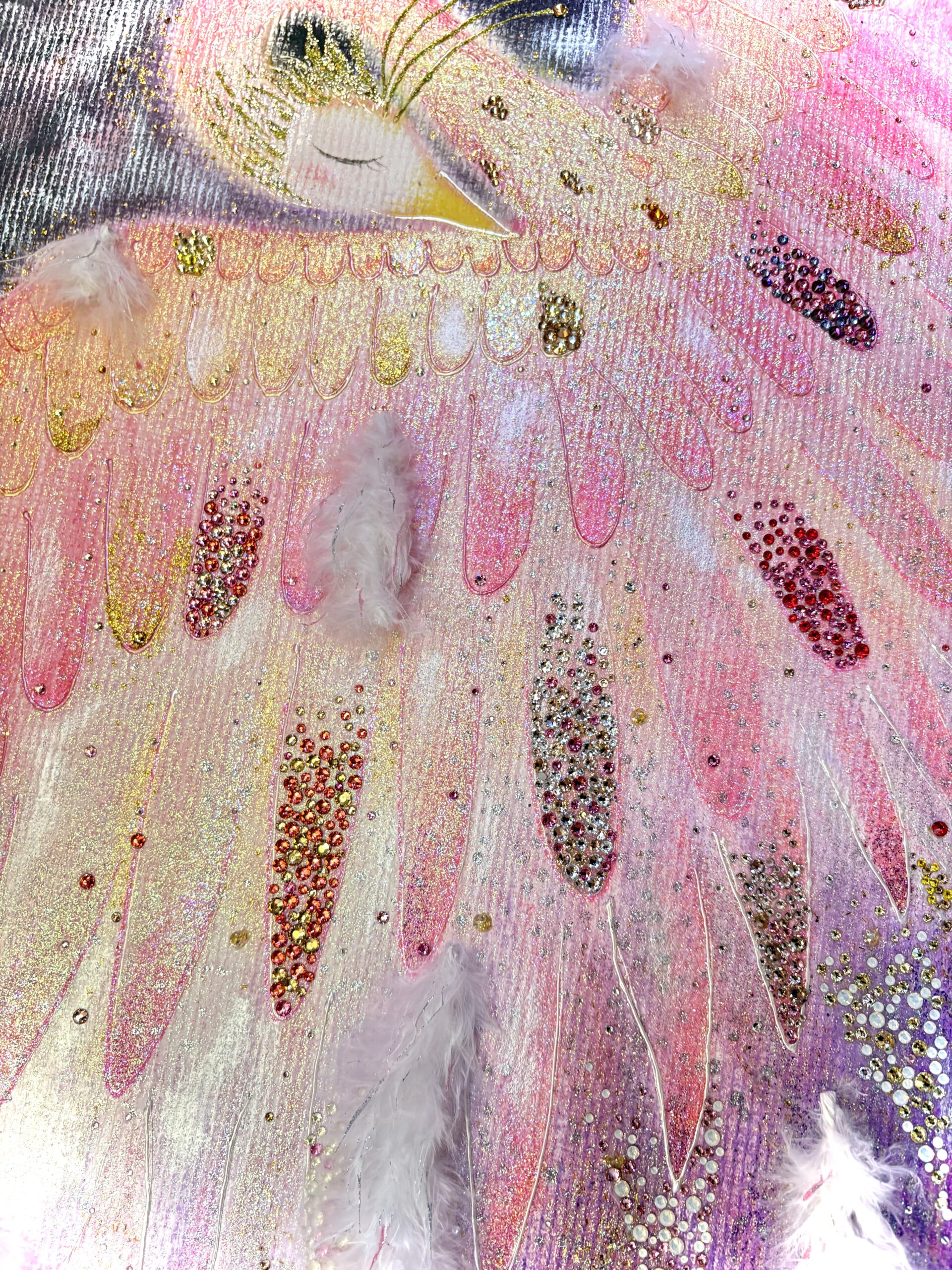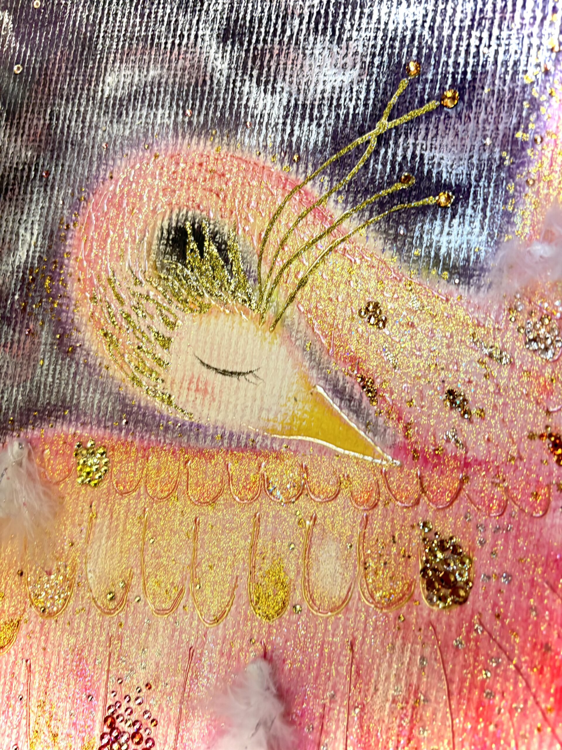 【LOVEフェニックス】 一点もの原画 鳳凰 愛の絵 優しい絵 ヒーリングアート ピンク鳳凰